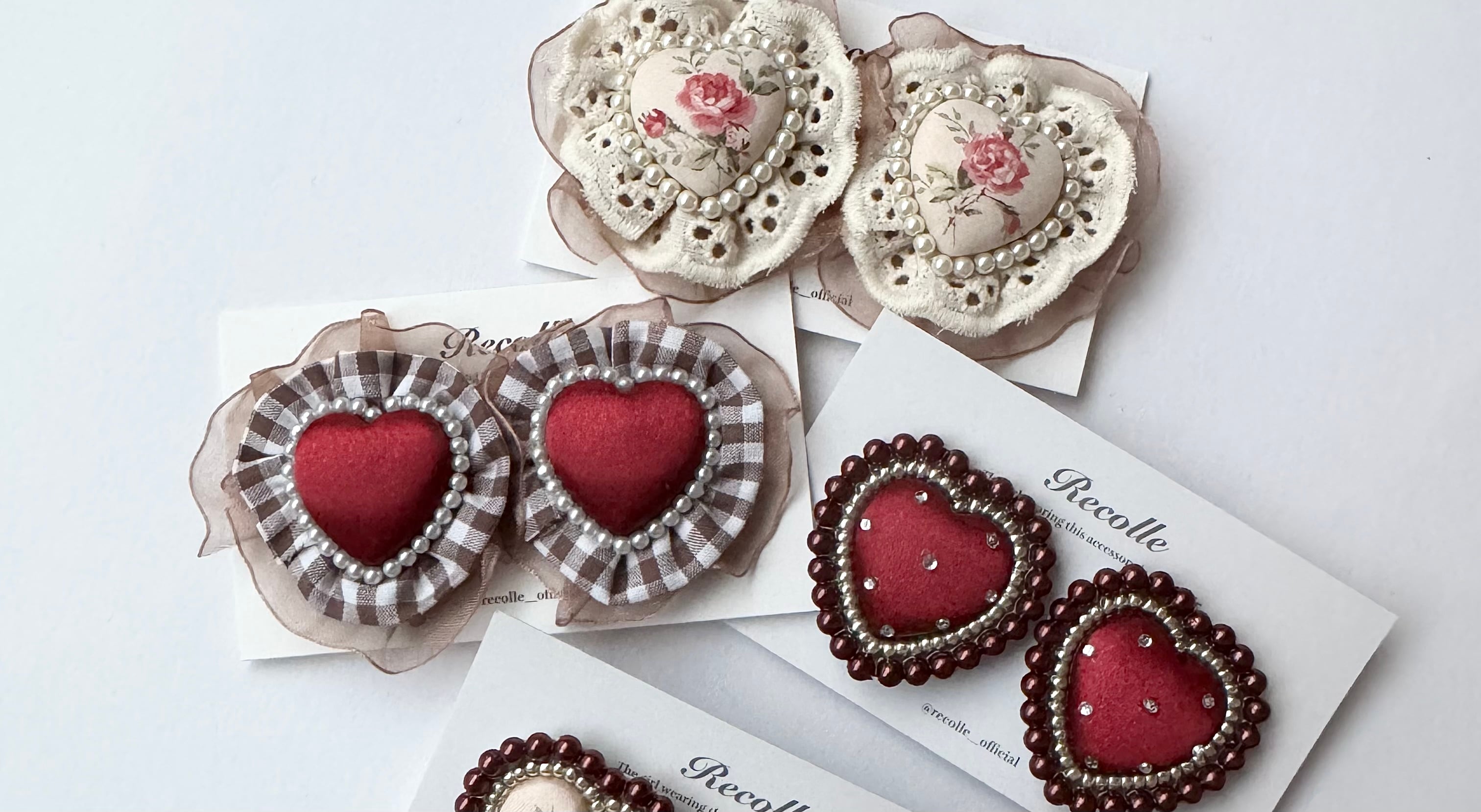 発売から7年間ずっと愛され続けている Recolleの定番アイテム”リコレハート” 著名人の着用も多数! 定番のリコレハートとは一味ちがった "フリルリコレハート"がパワーアップして登場♡ ハートの周りにフリルが…♡ 女の子がトキメク要素満載! デザイナーが今期もっとも推してるitemです! 大ぶりで目を引くデザインは他にはない存在感! 大ぶりなのに軽くて着け心地がいいのもおすすめポイント♡ 今までありそうでなかったサテン生地がなんとも言えない可愛さ。。♡ 光沢感がこれからの季節に華やかさをプラスしてくれます! ーーーーーーーーーーーーーーーーーーーーーーーーーーーーーーー サイズ:直径4㎝ *全ての工程を1つずつデザイナーが手作業で行なっております。 *柄の入り方など、多少の個体差がございますのでご了承下さいませ。 *こちらの商品はレジンを使用しております。 アレルギーがある方はご購入をお控え下さい。