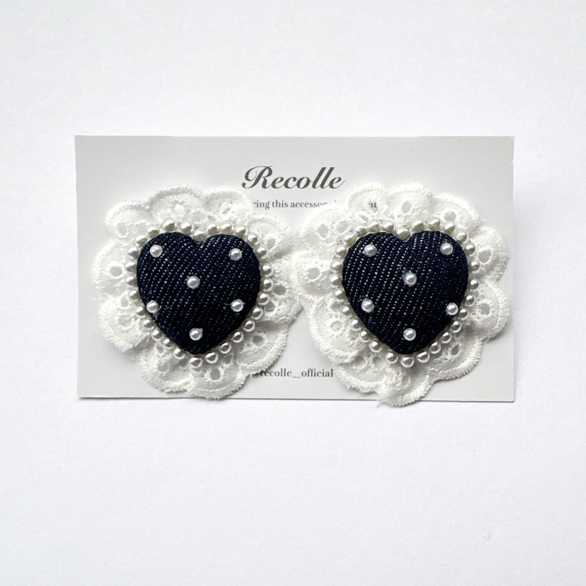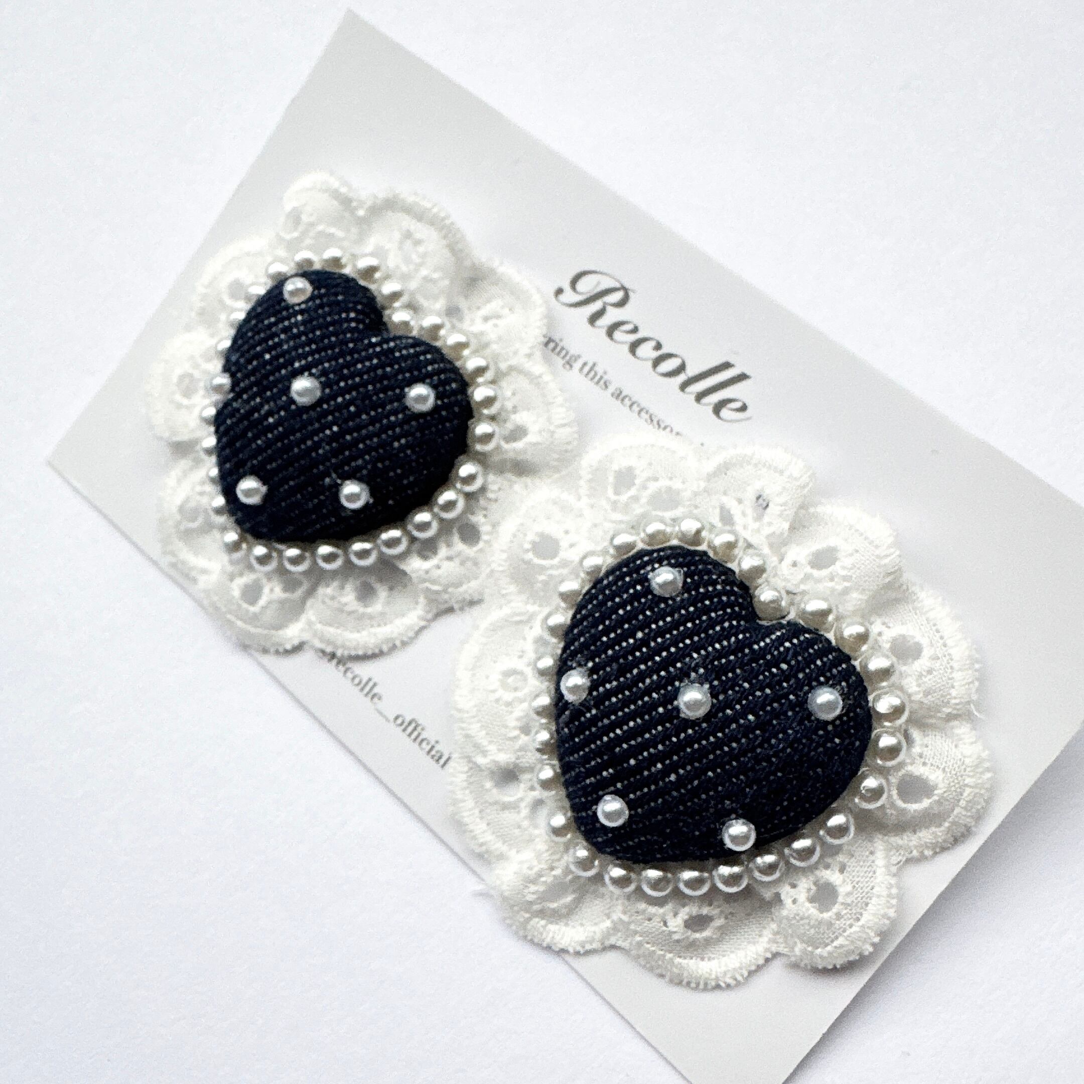 Frill Recolle Heart (dot denim×lace)