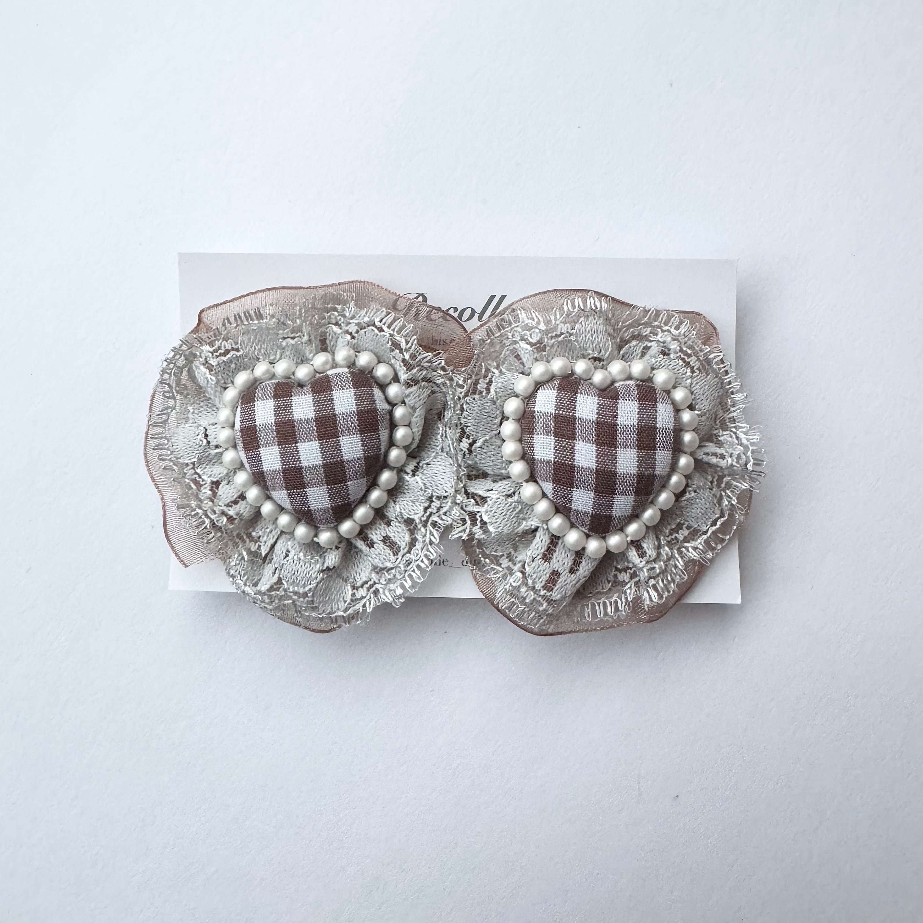 Frill Recolle Heart (brown gingham×blue lace)