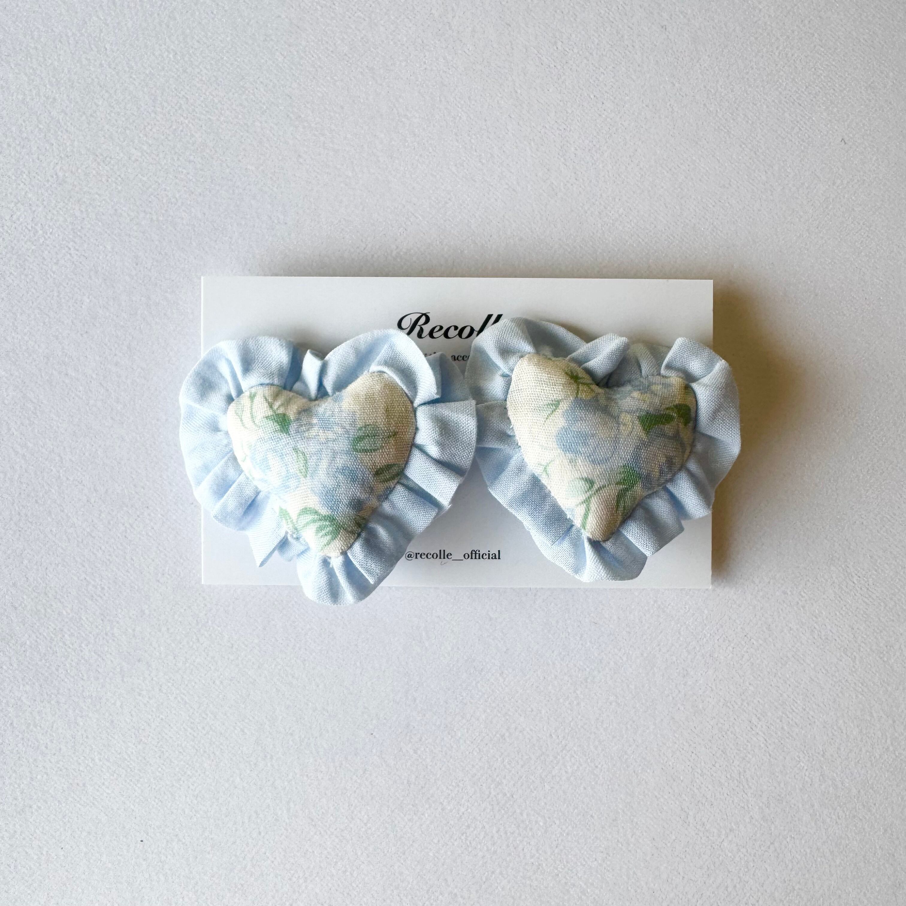 Cushion Frill Heart(flower/ blue)