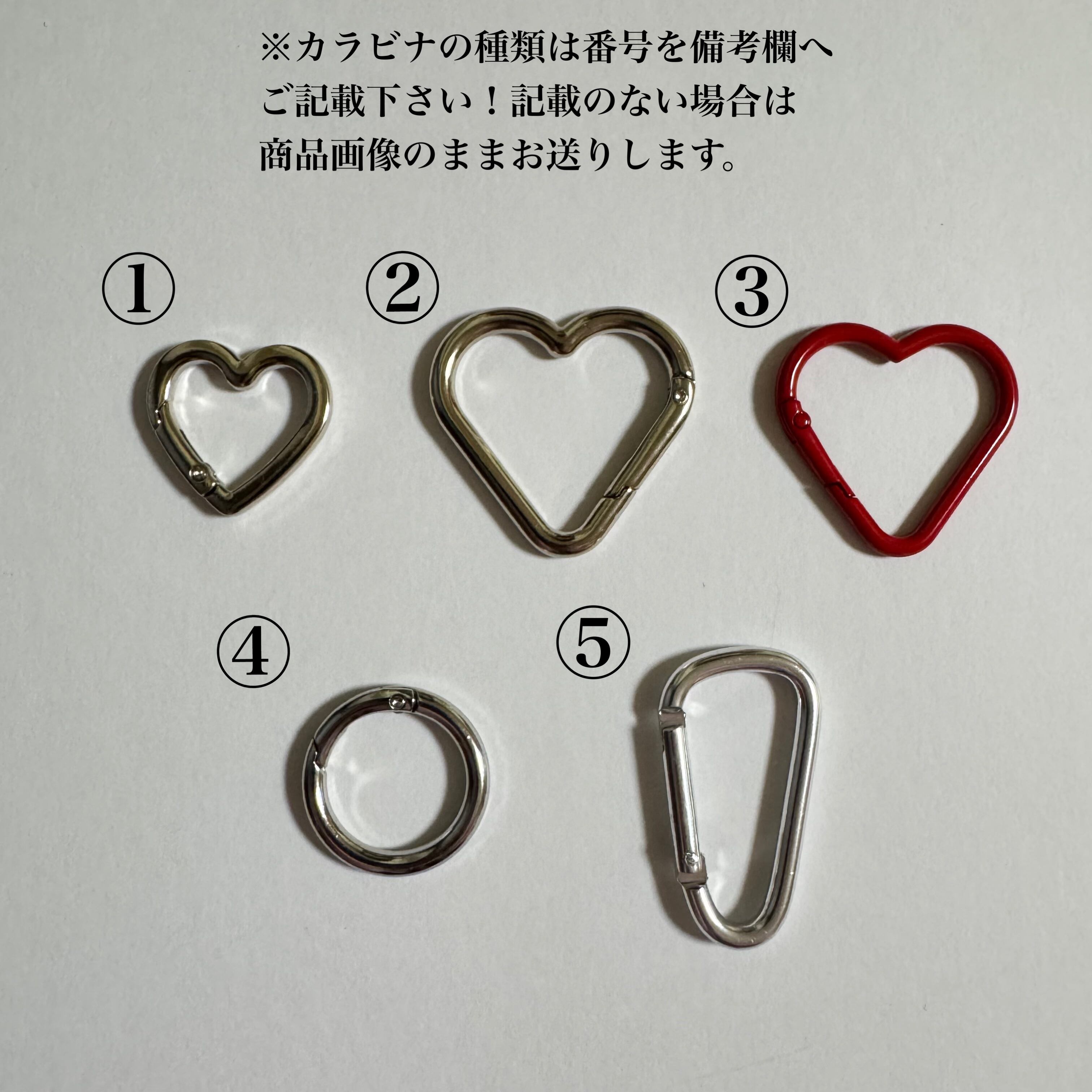 備考欄にカラビナの番号を記載頂くようお願い致します!記載がない場合は写真のタイプでお送りします!