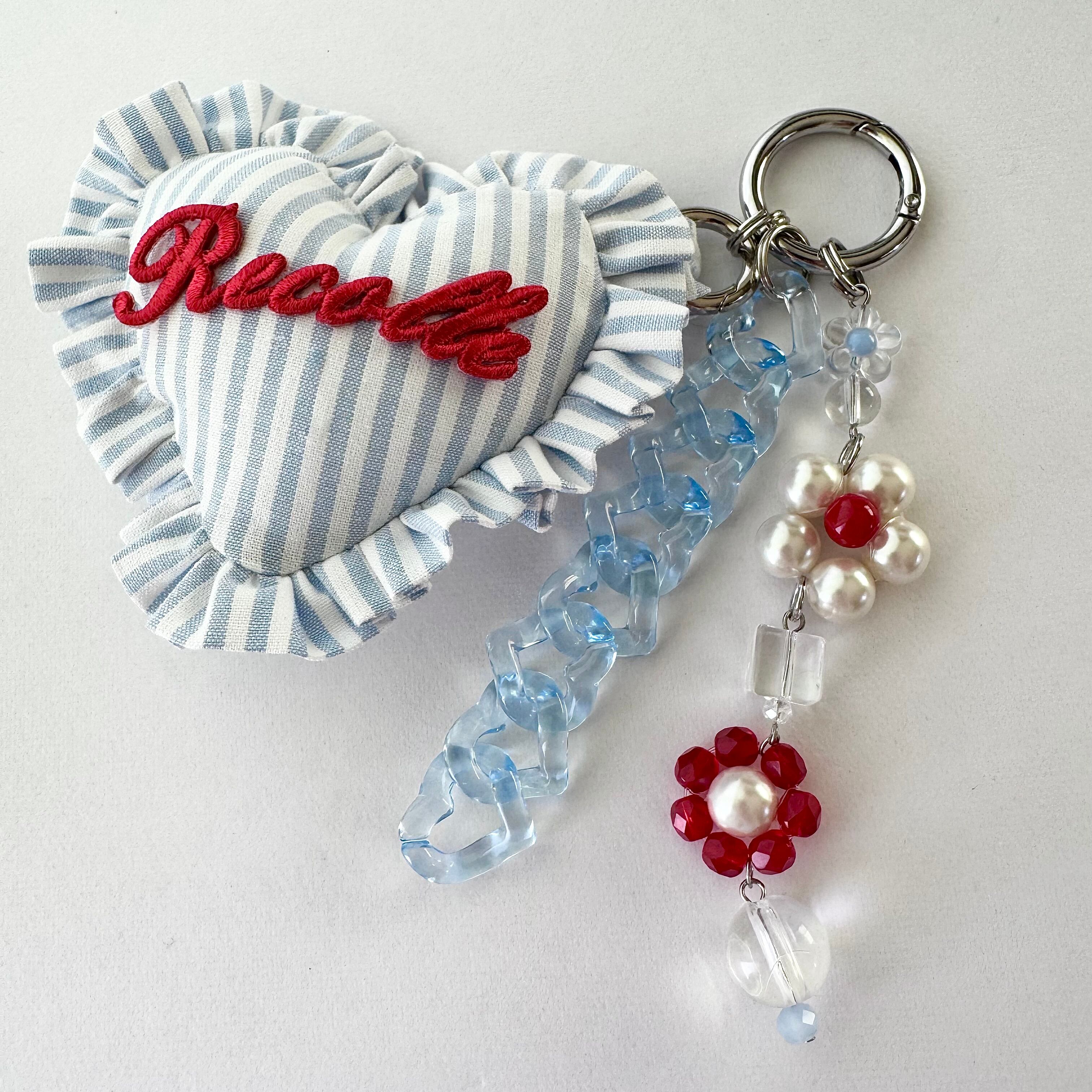 Cushion Frill Heart bag charm(stripe/blue)