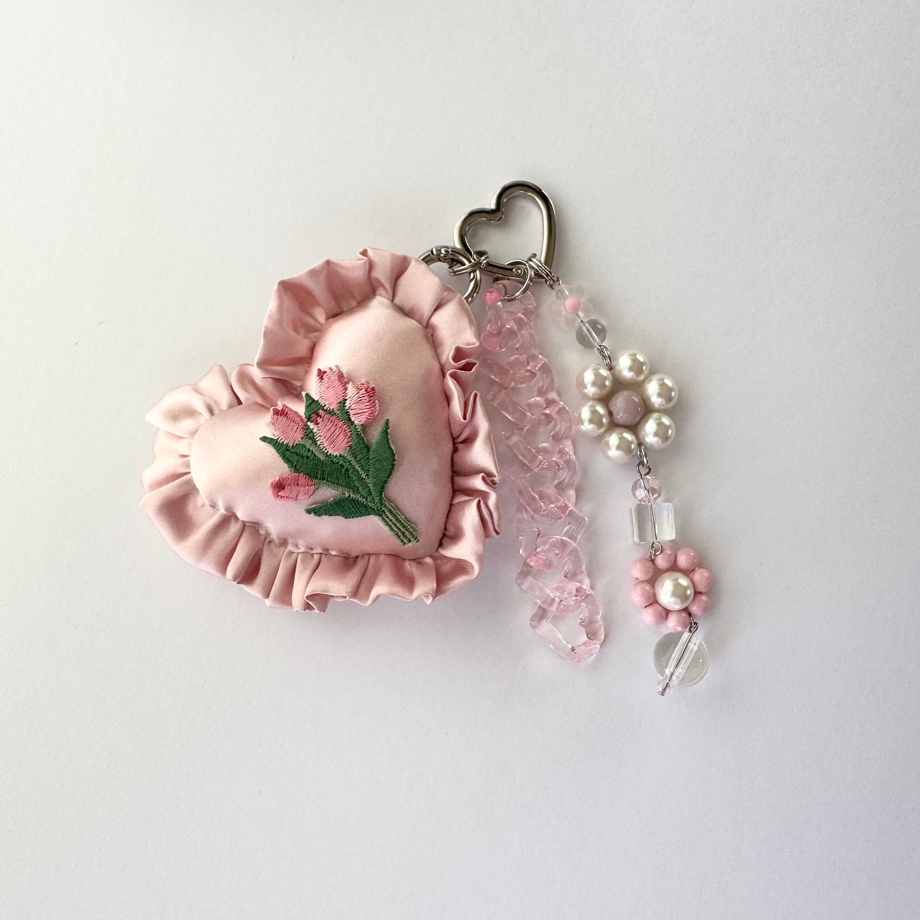まるでクッションのようなフワフワのハートがバッグチャームに♡